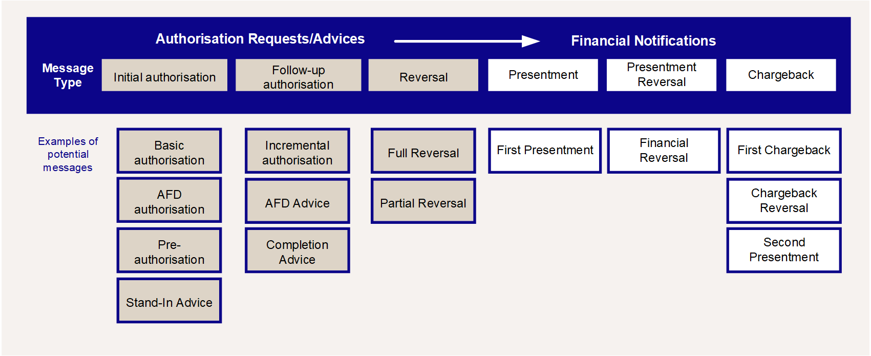 Figure 8: Examples of typical authorisation and financial messages - Dual Message Systems