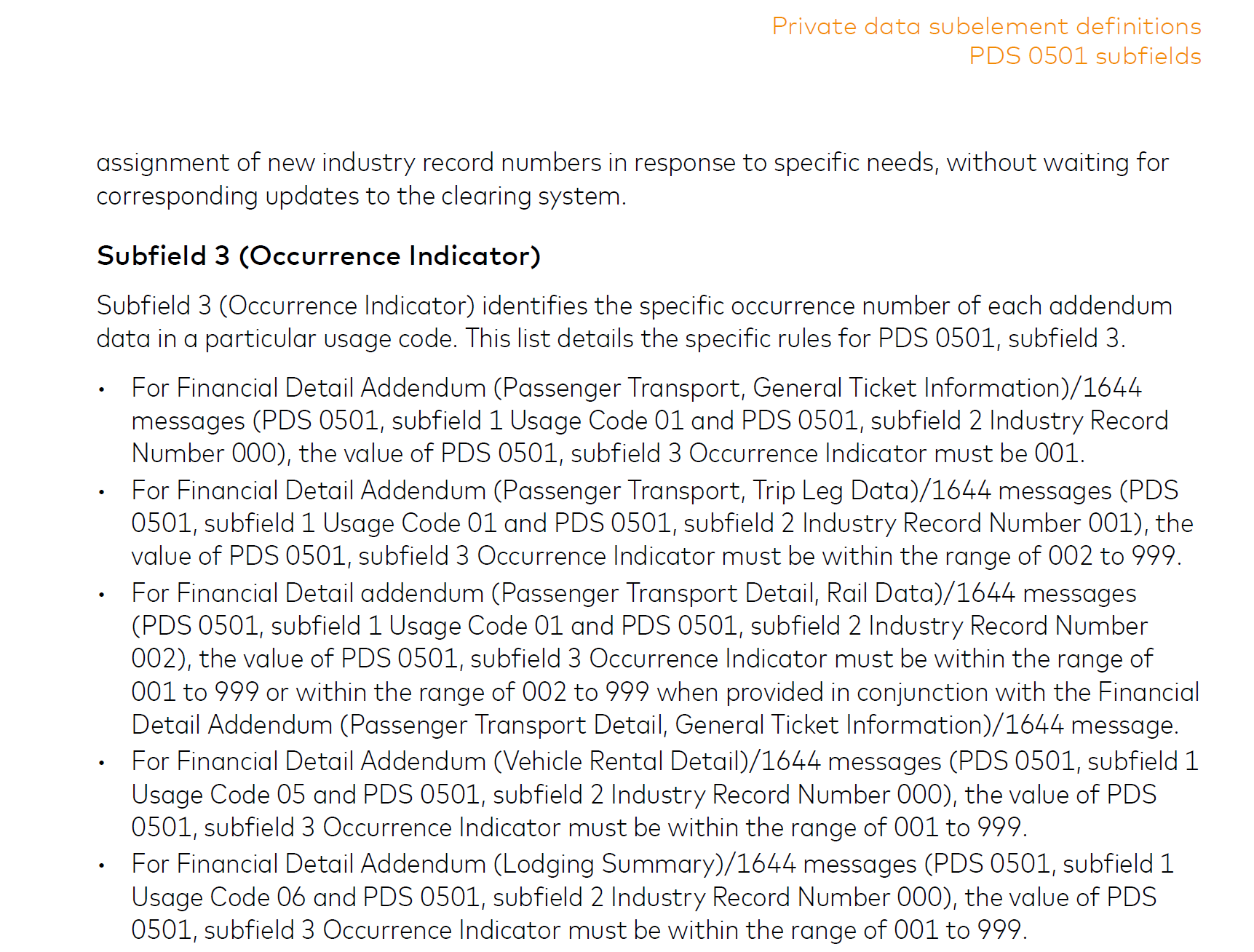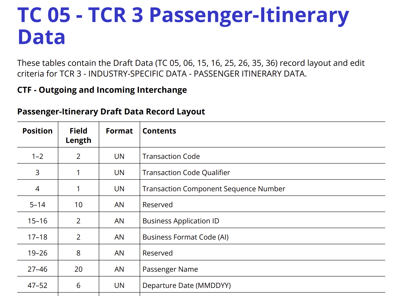 - Scroll down to find the codes for the relevant industry. For example Airline, Passenger Itinerary includes different codes to Car Rental.