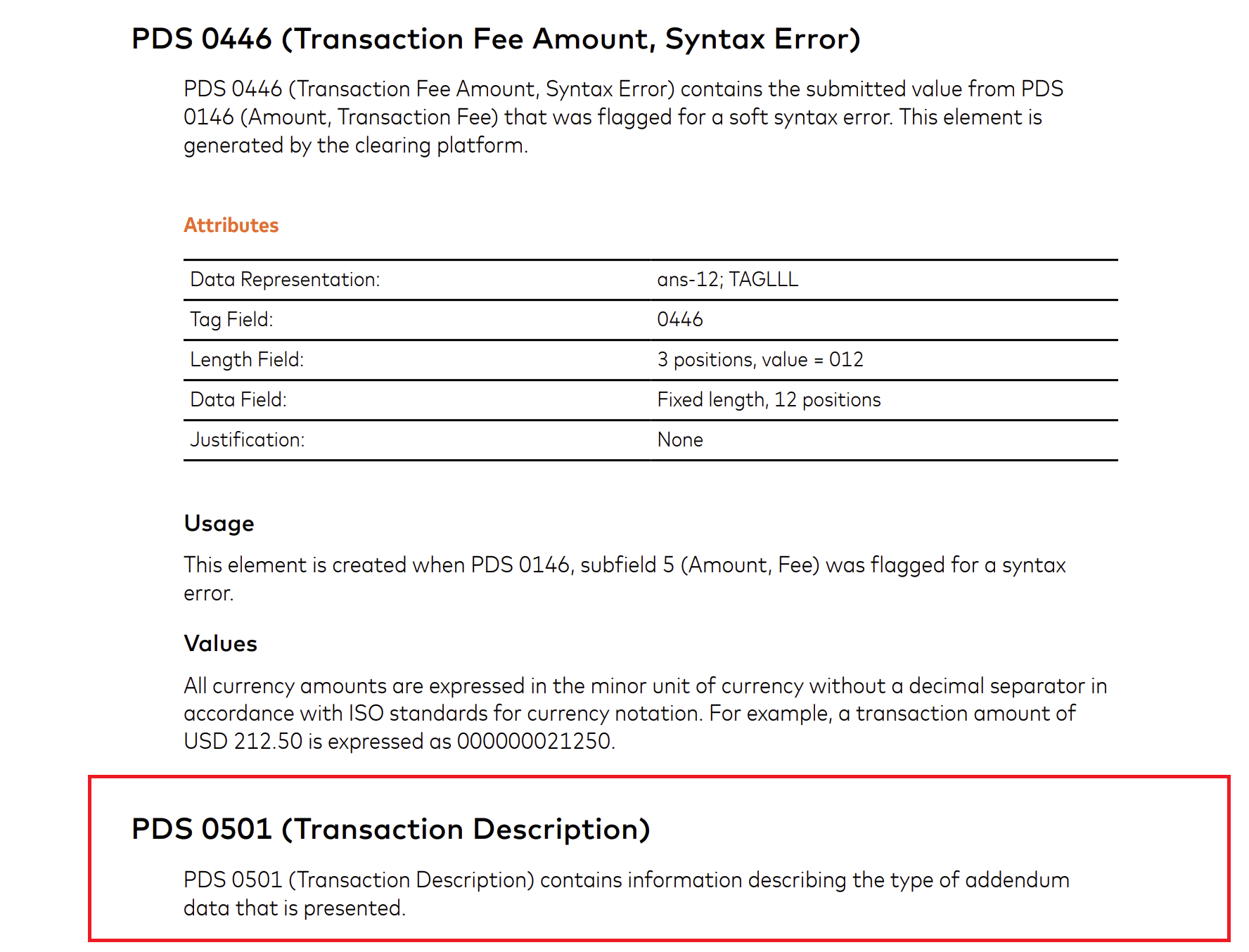 - Go to the following section in the guide: PDS 0501 (Transaction Description).