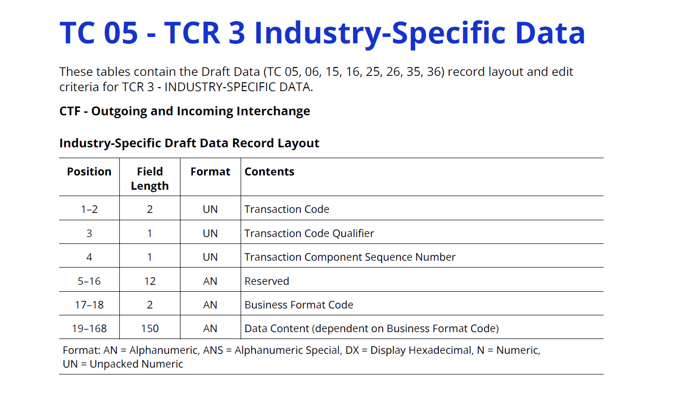 - Go to the following section in the guide: TC05 -TCR3 (Industry-Specific Data)